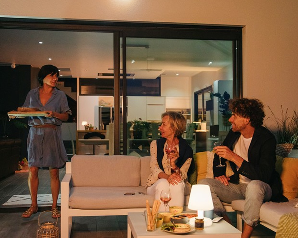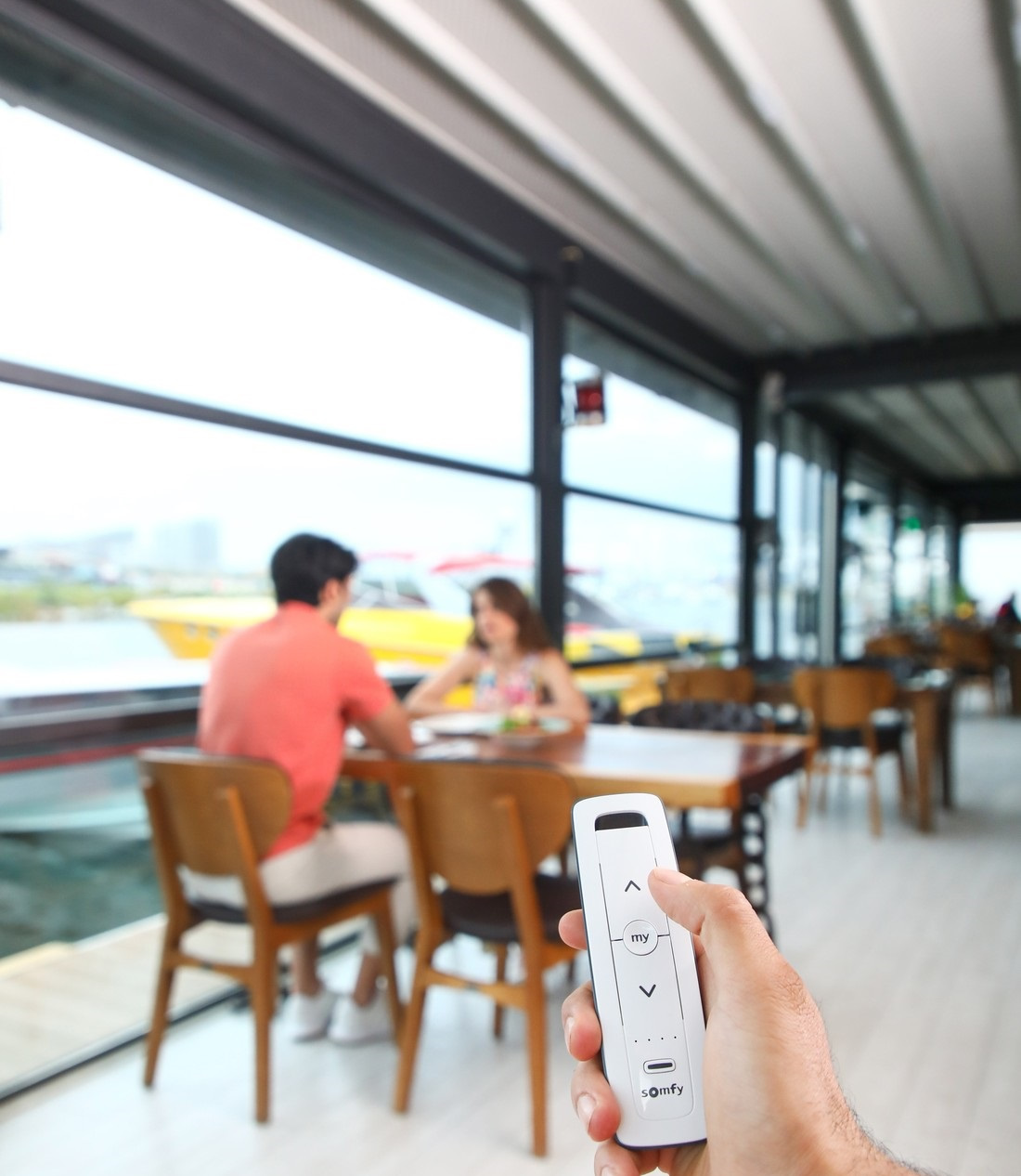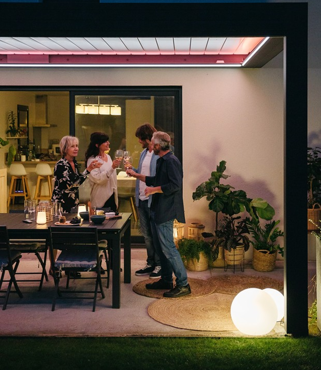 Instruct your voice command assistant for an "evening scenario" and your awning will open to welcome the cool evening air, the lights in your garden will come on and music will start playing.