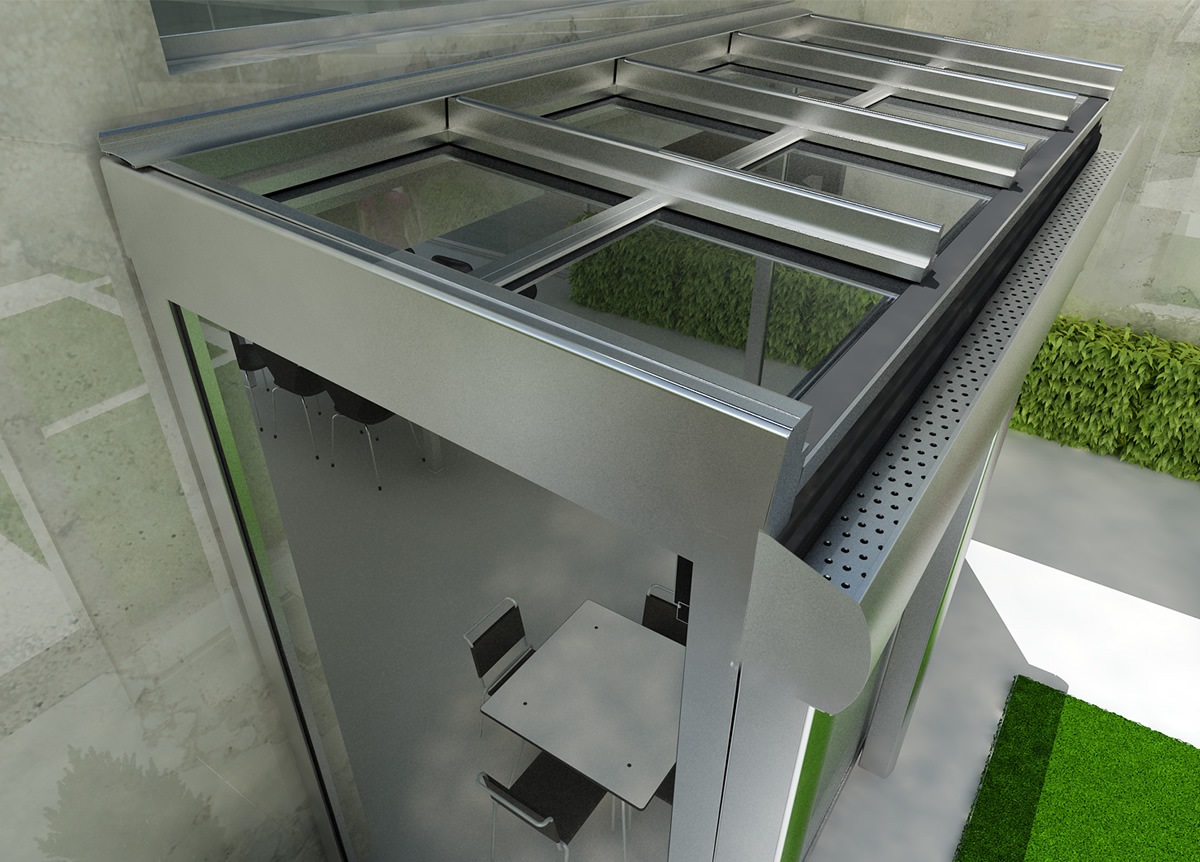 two- or multi-slope roofs, windows or doors where desired, with integrated return profile and multi- glazing.